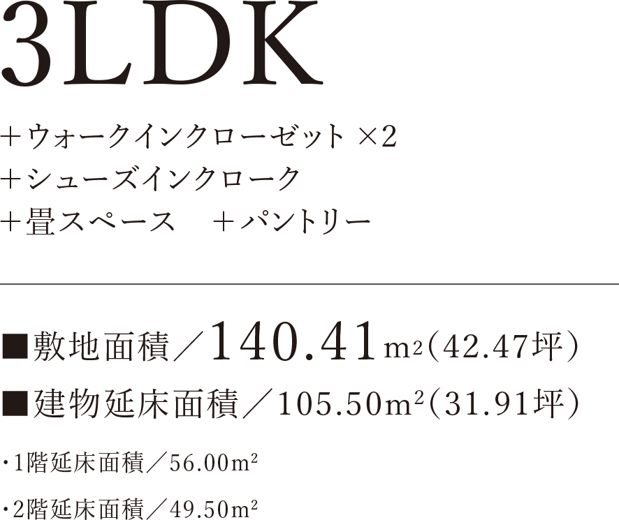 ランドリールームからも近く、洗う→干す→しまうが時短できます。衣類以外の頻繁に使用しない家電やスーツケースなどもたっぷり収納できます。