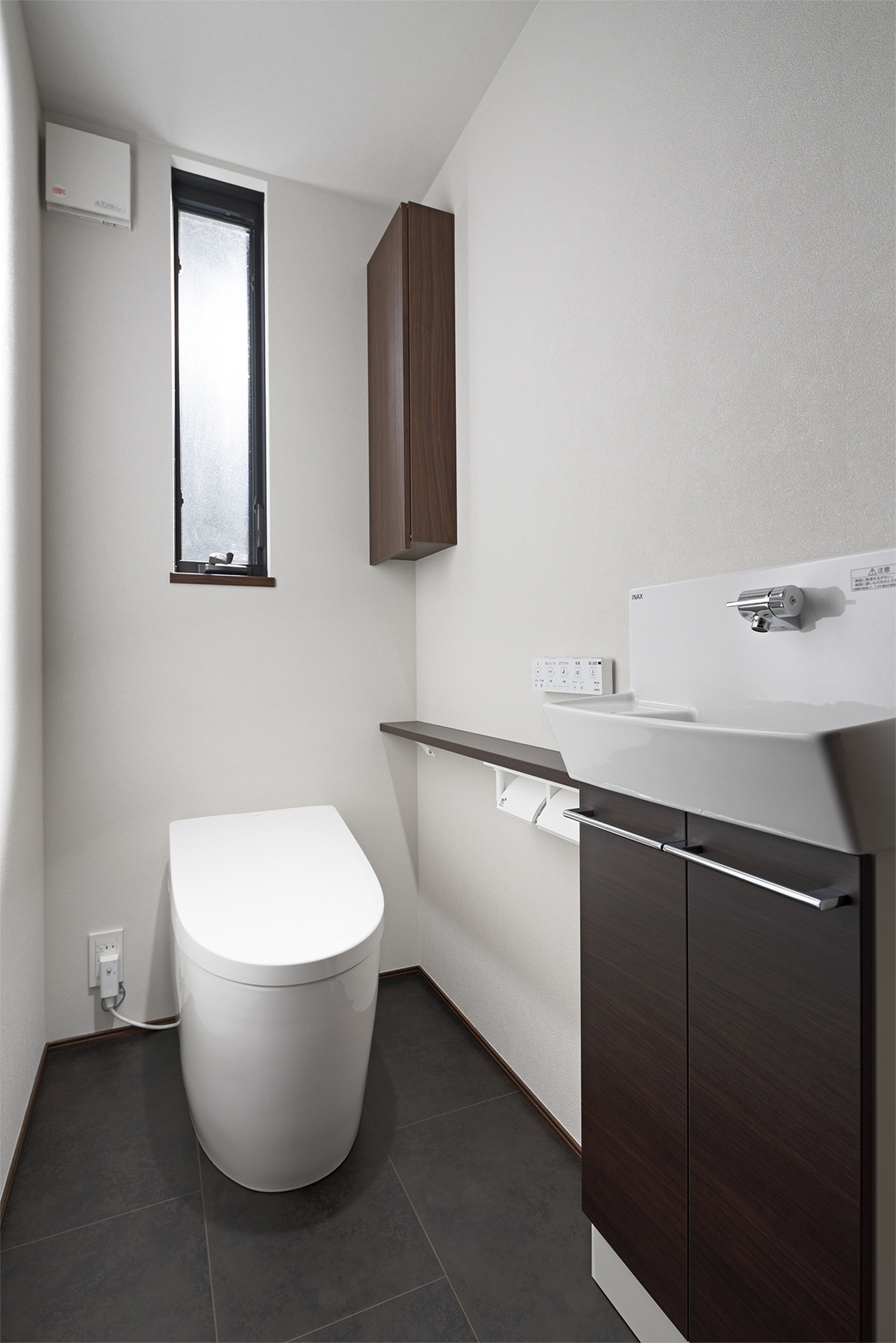 革新的な清潔技術に加え、デザインの美しさにも配慮されたトイレ。手洗いカウンターも備えることで、毎日を清潔かつ上質に過ごせるトイレ空間を実現しています。