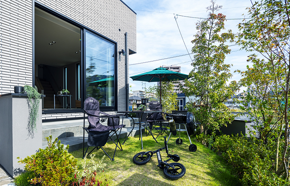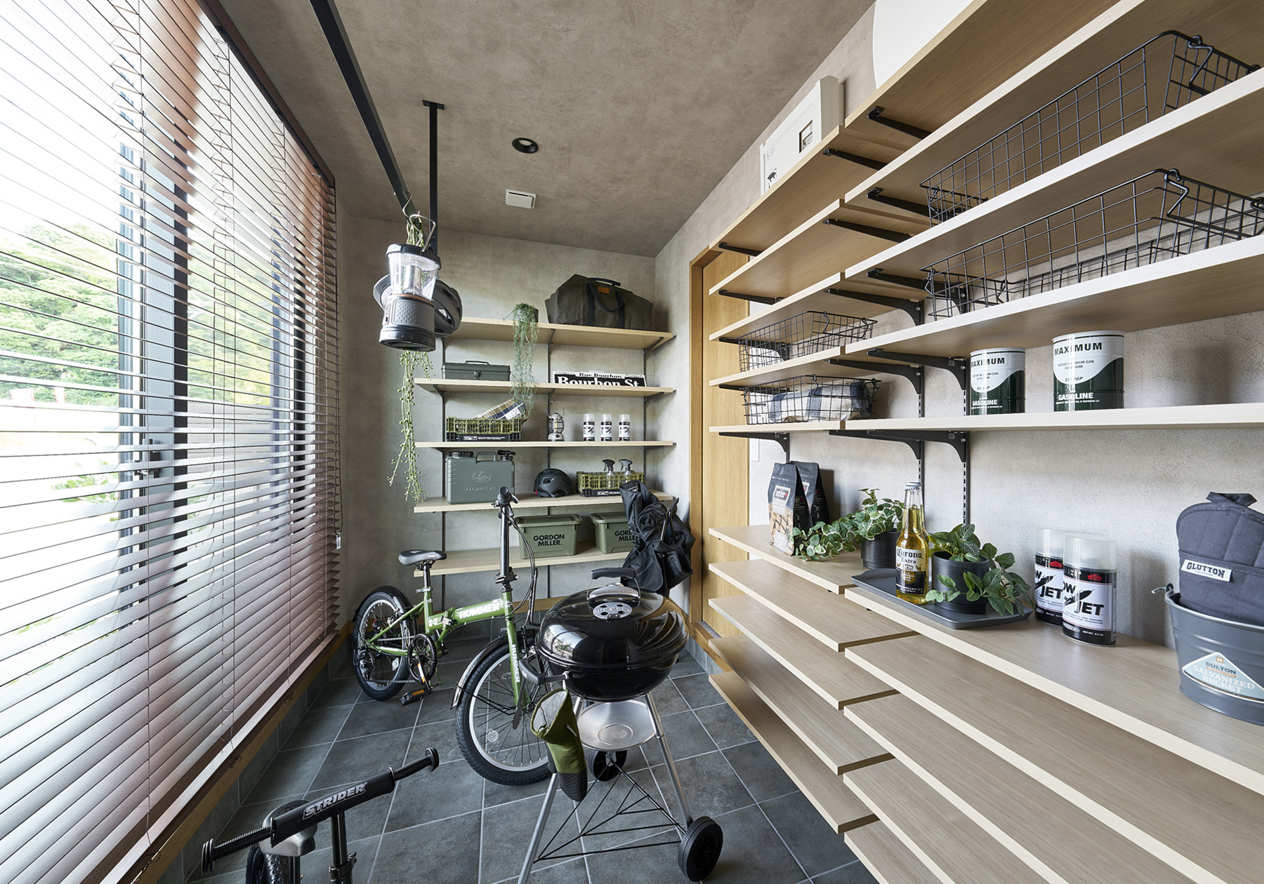 お気に入りの自転車をメンテナンスしたり、週末は家族でキャンプを楽しんだりなど、そんなアウトドアな家族に最適なプラン。収納充実の土間ルームやオープンエアのプライベートテラスなど、多彩なプラスα空間が遊び心を刺激します。