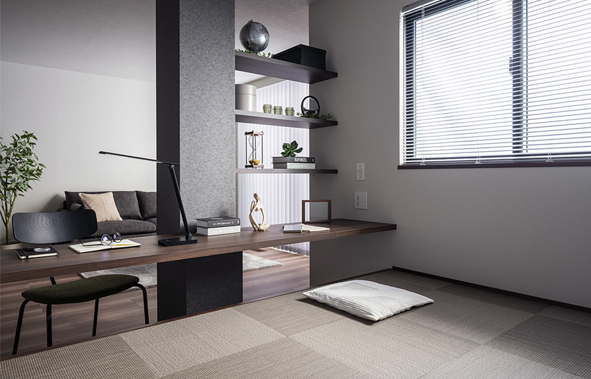 リモートワークやお子様の勉強、趣味やお昼寝空間としてマルチに活用できるテキスタイルフロアを採用したコンセプトプラン。仕事、遊び、親子の時間など、住まいのなかで、さまざまな家族時間を満喫したい。そんなご家族におすすめのプランとなっています。